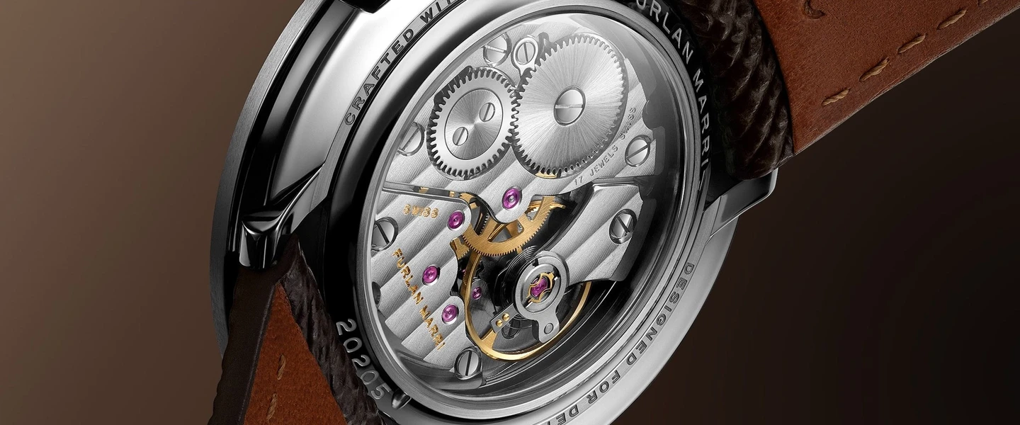 ファーラン・マリはブリッジを再設計し、すべての面取りに手作業での仕上げとダイヤモンドポリッシュを施しました。クラウンホイールやネジはブラックポリッシュと面取りによって磨き上げられています。これらはすべて、スイス・ジュネーブ(メイラン)の職人の手によって丁寧に仕上げられています。