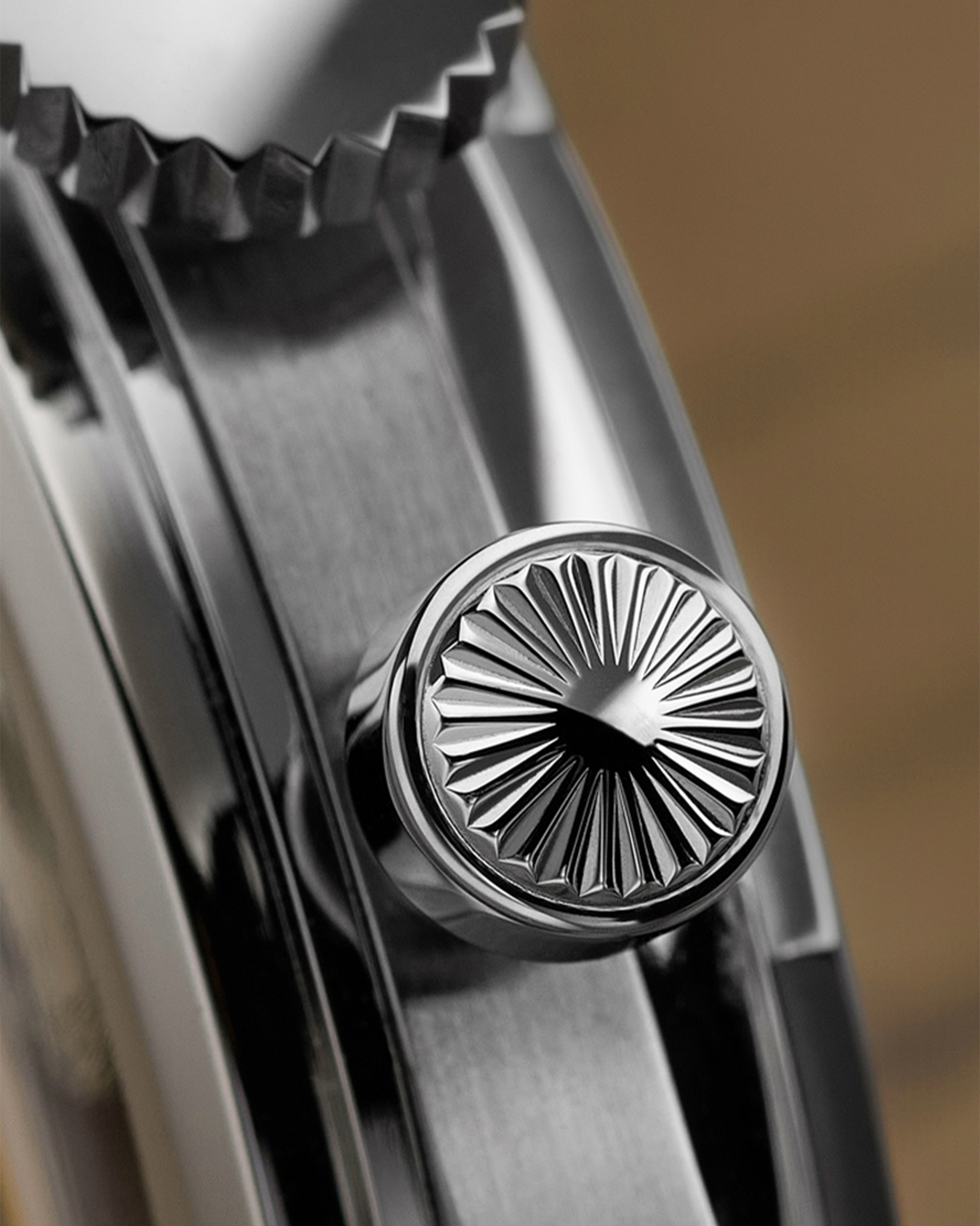 1940年代トラベルケースに着想を得た、シンプルで洗練されたパッケージ。保証書やマイクロファイバークロス、交換ストラップを備え、旅先でも大切な時計を守ります。私たちのストーリーに触れ、次はあなた自身のストーリーを。