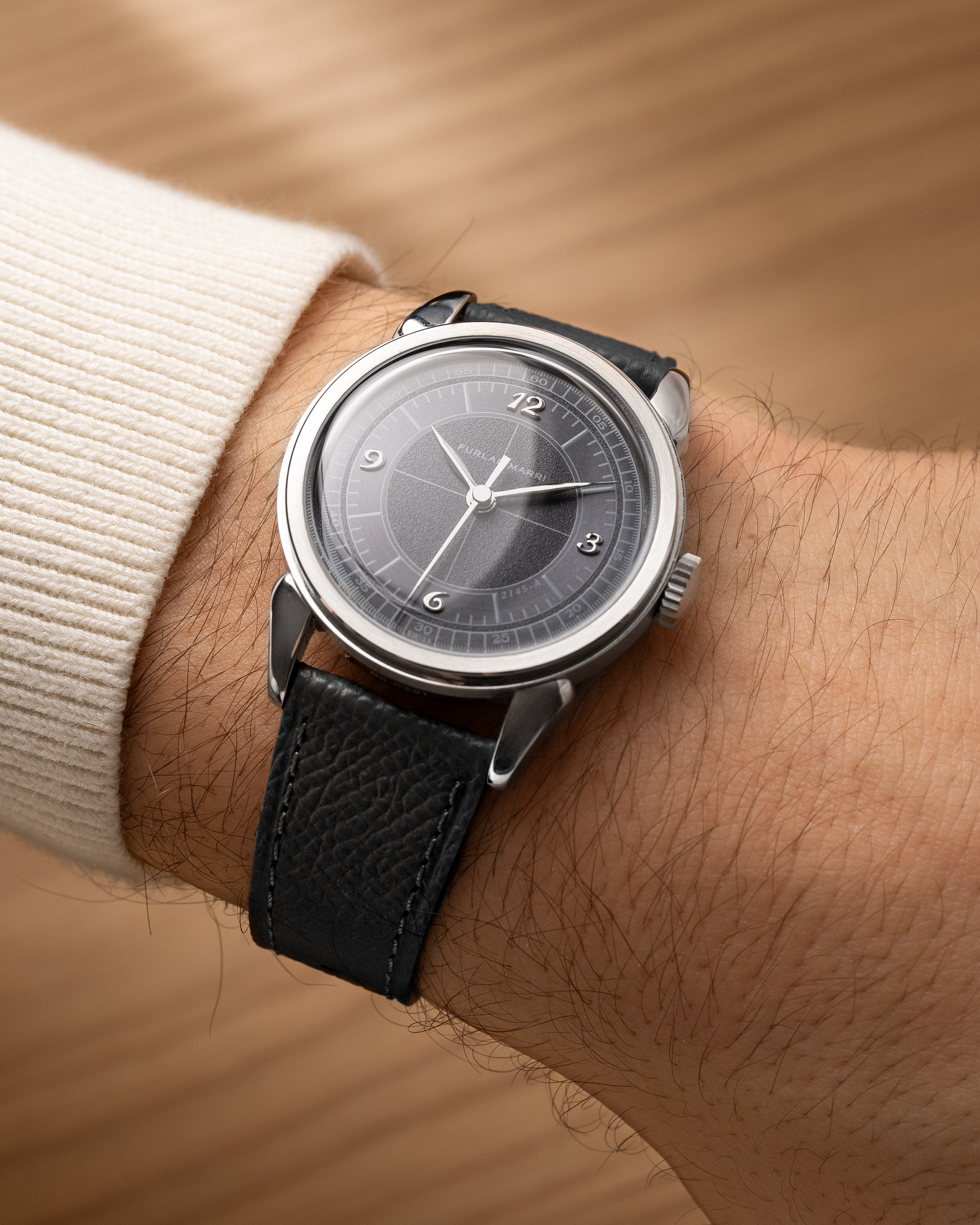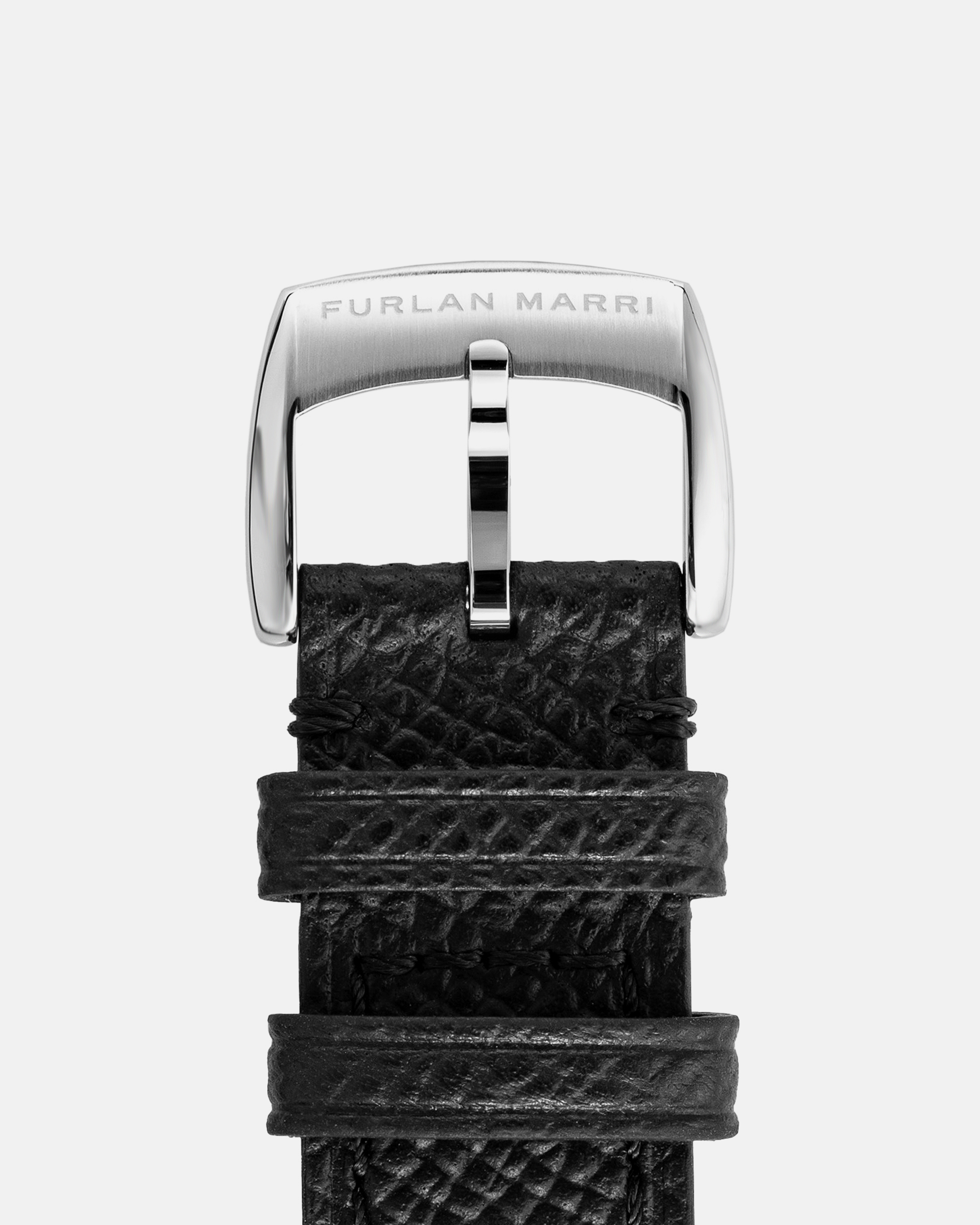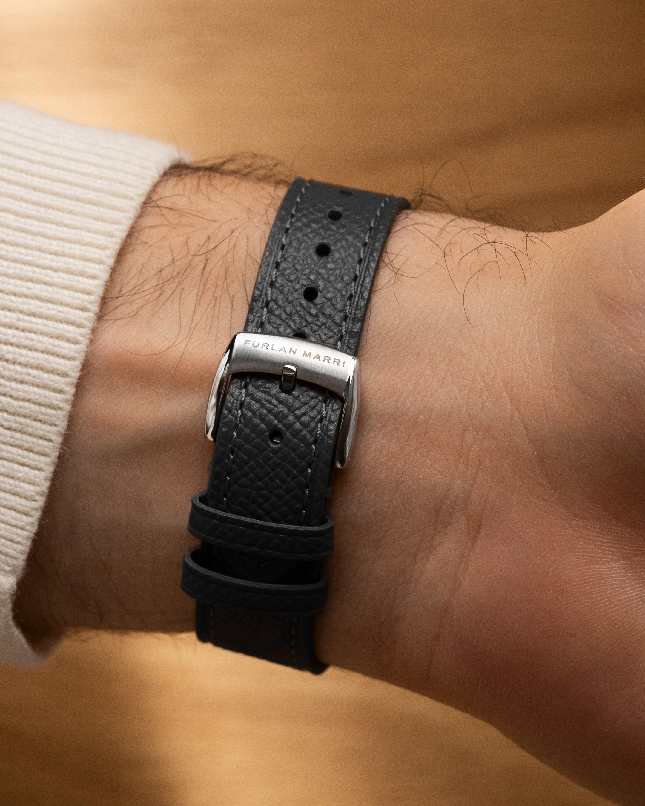 316Lステンレススチール製のピンバックルで、ブラッシュ仕上げが施され、署名とシリアルナンバー(20202.1)が刻印されています。