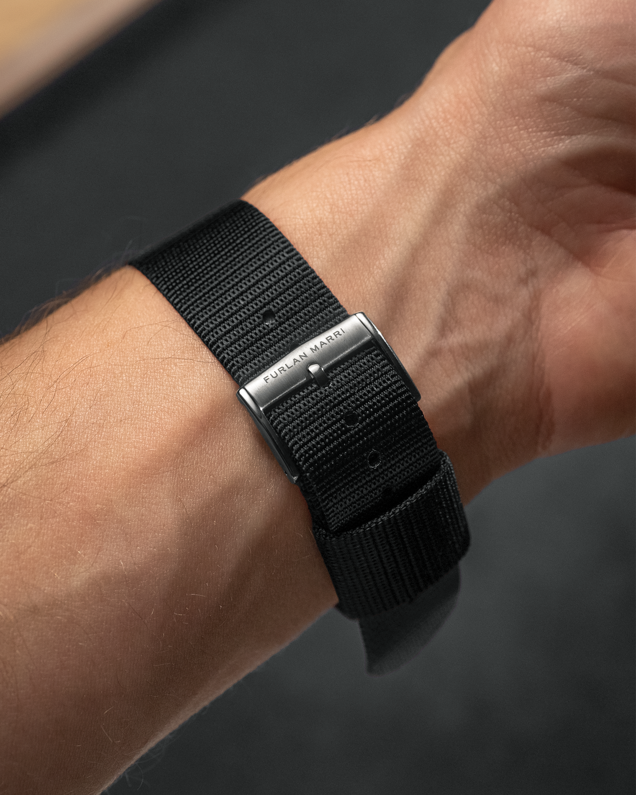 316L ステンレススティール製のピンバックルは、ブラッシュ仕上げが施され、ロゴ入り、リファレンス番号が刻印されています。