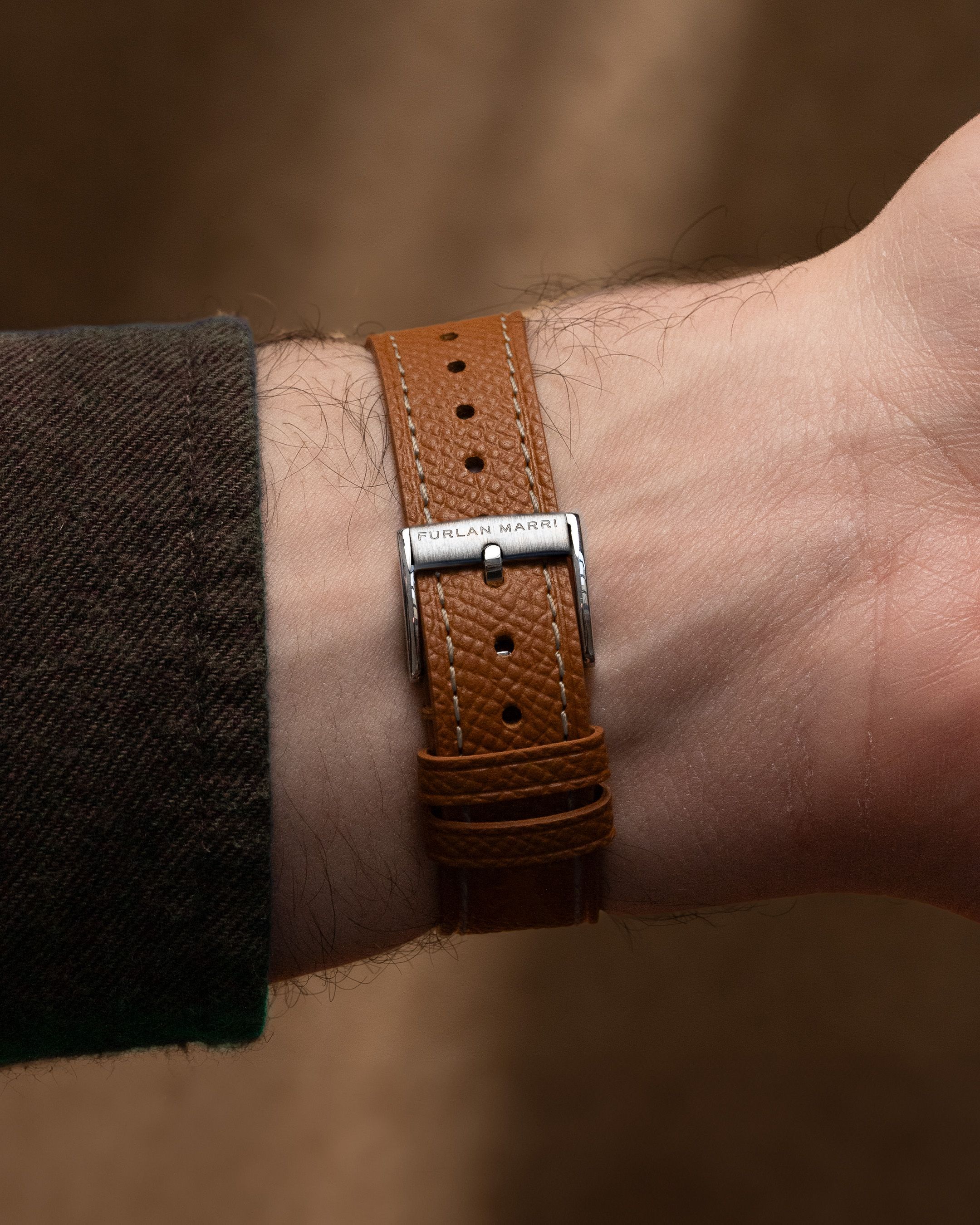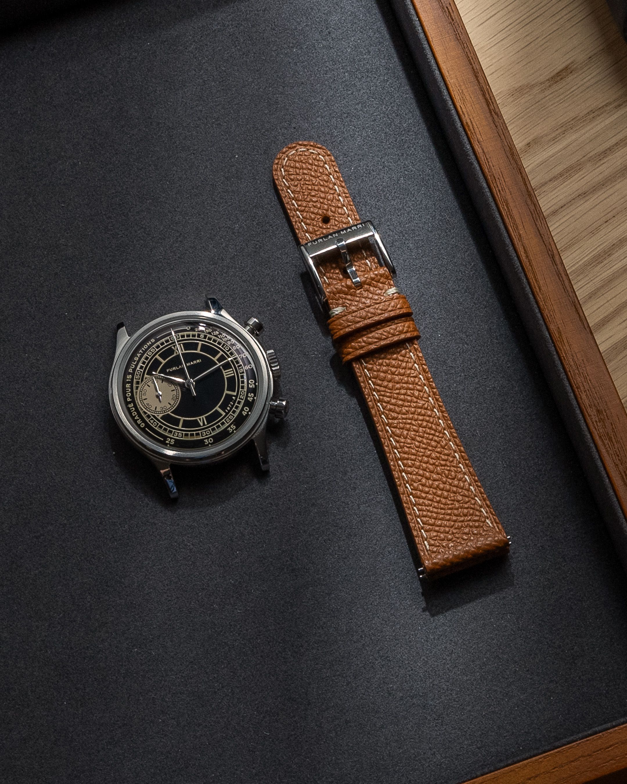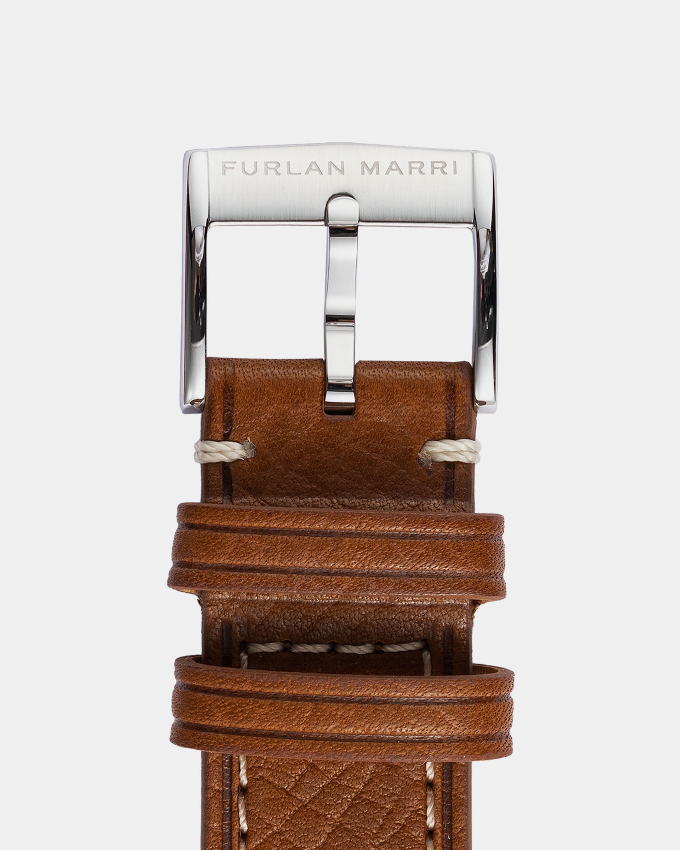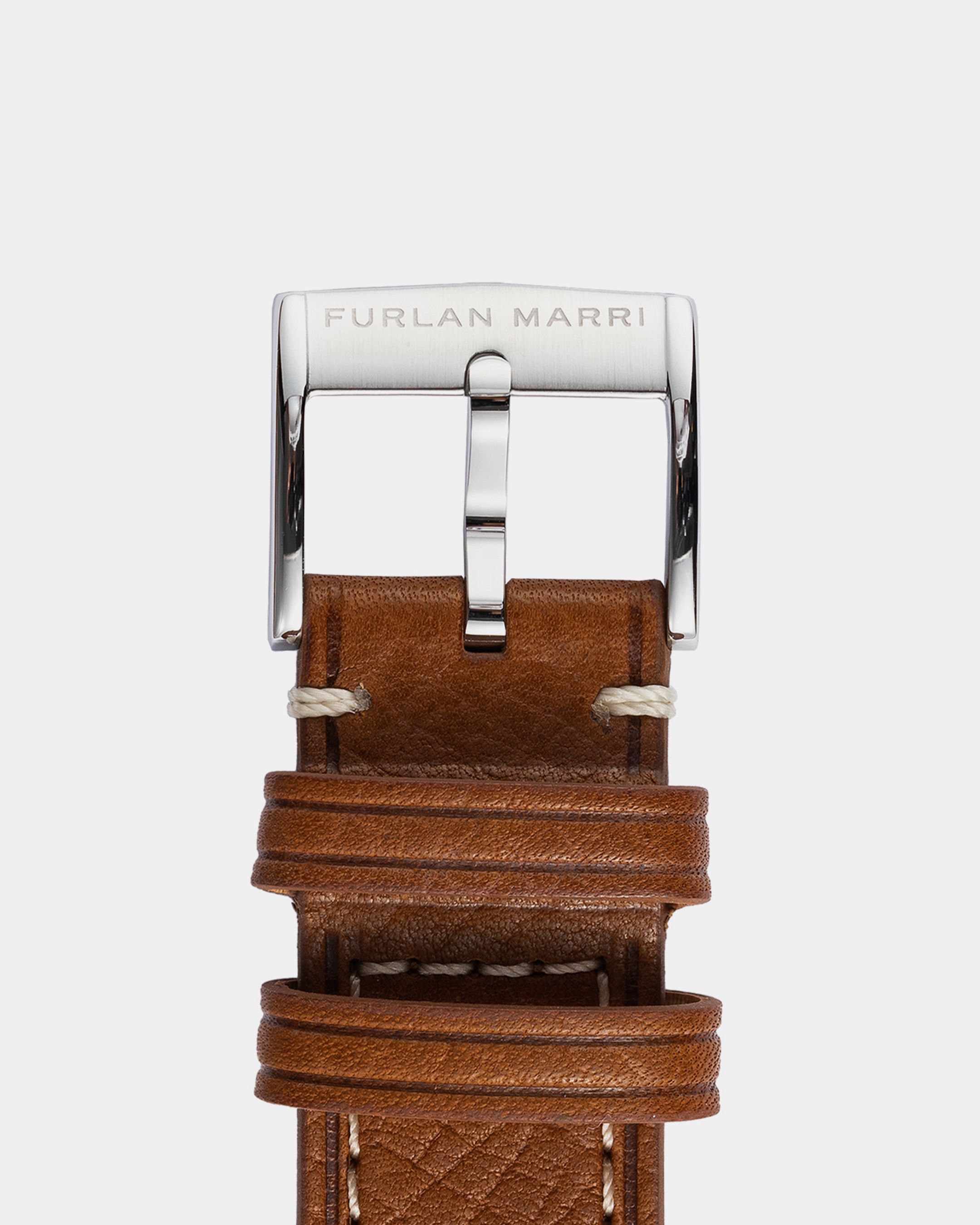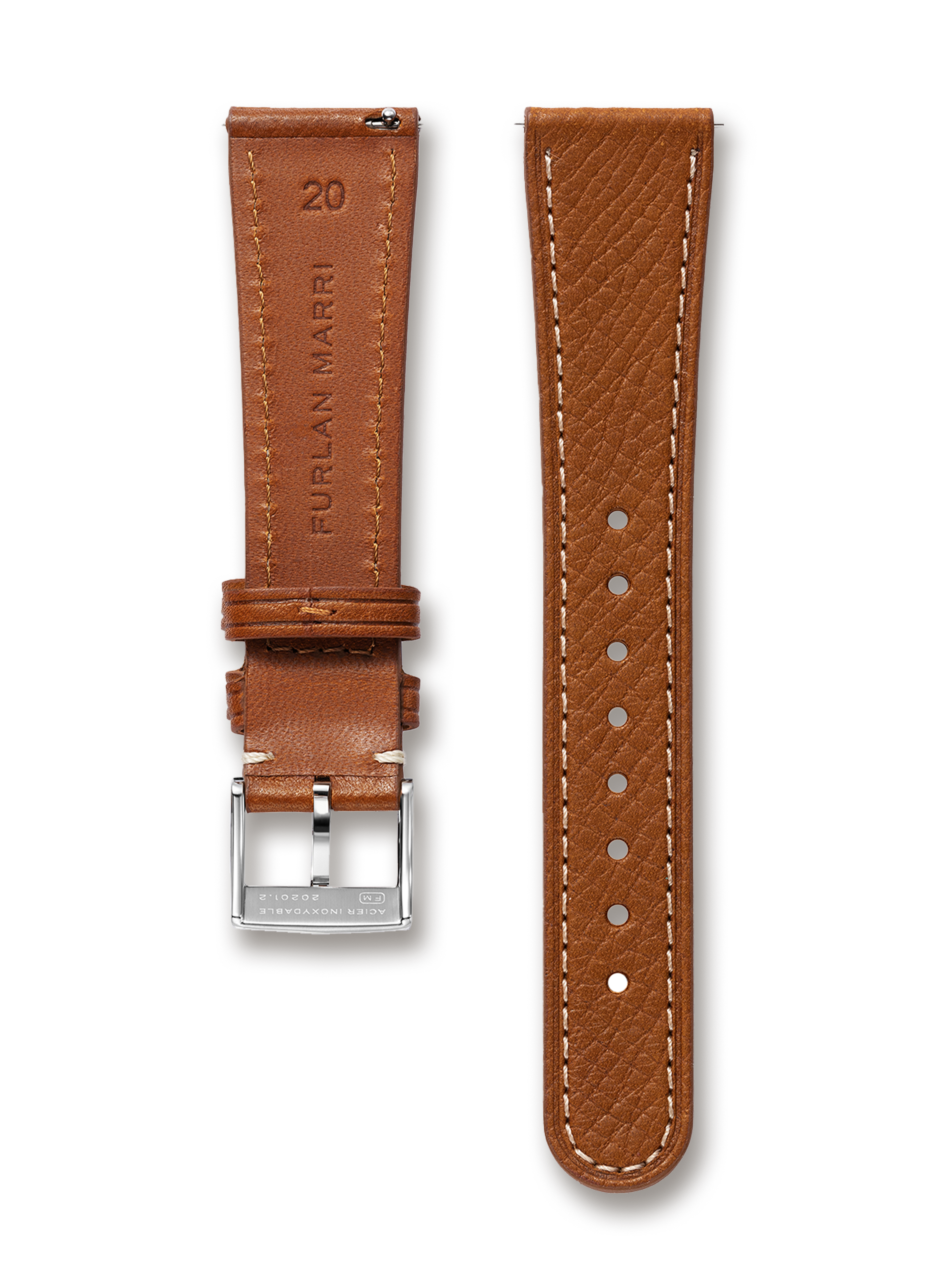 316Lステンレススチール製のピンバックルで、ブラッシュ仕上げが施され、署名とシリアルナンバー(20202.1)が刻印されています。