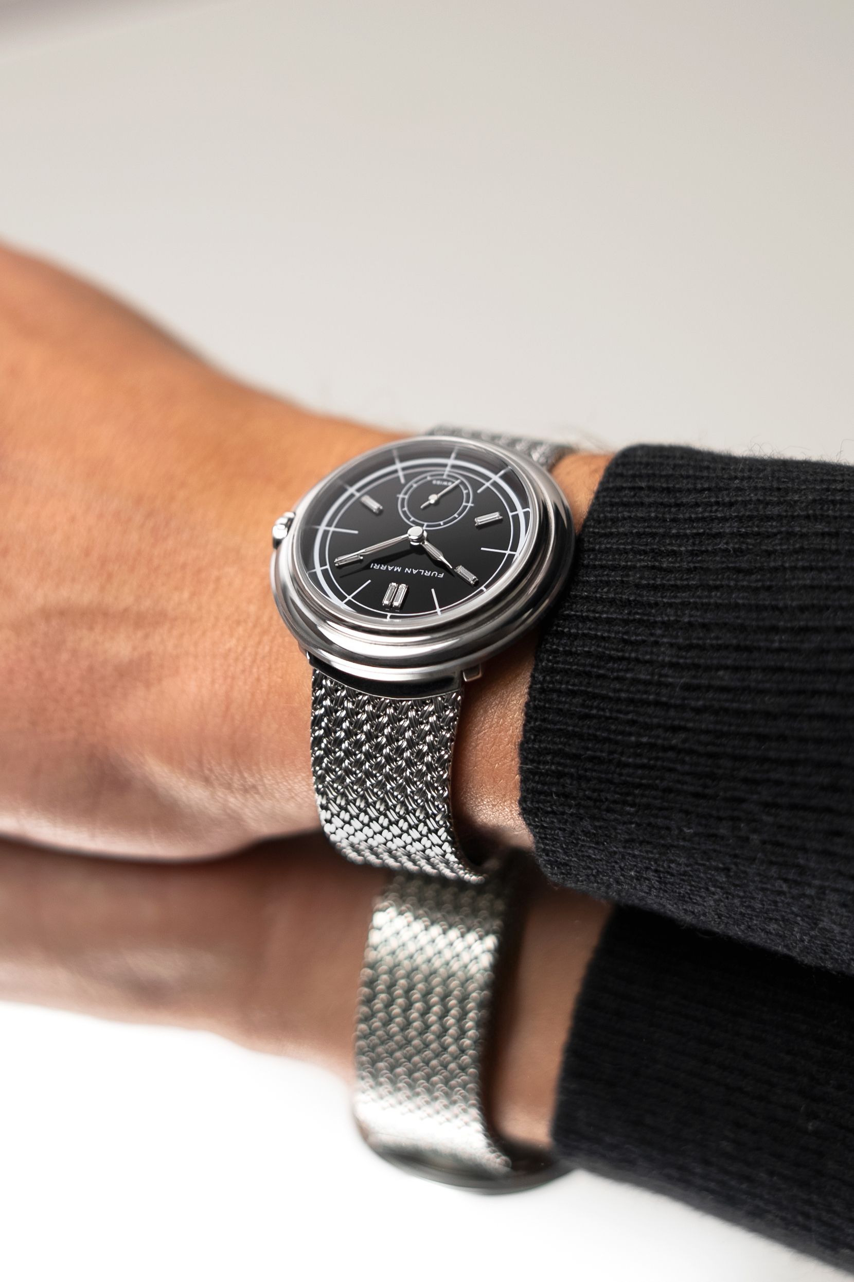 1940年代トラベルケースに着想を得た、シンプルで洗練されたパッケージ。保証書やマイクロファイバークロス、交換ストラップを備え、旅先でも大切な時計を守ります。私たちのストーリーに触れ、次はあなた自身のストーリーを。