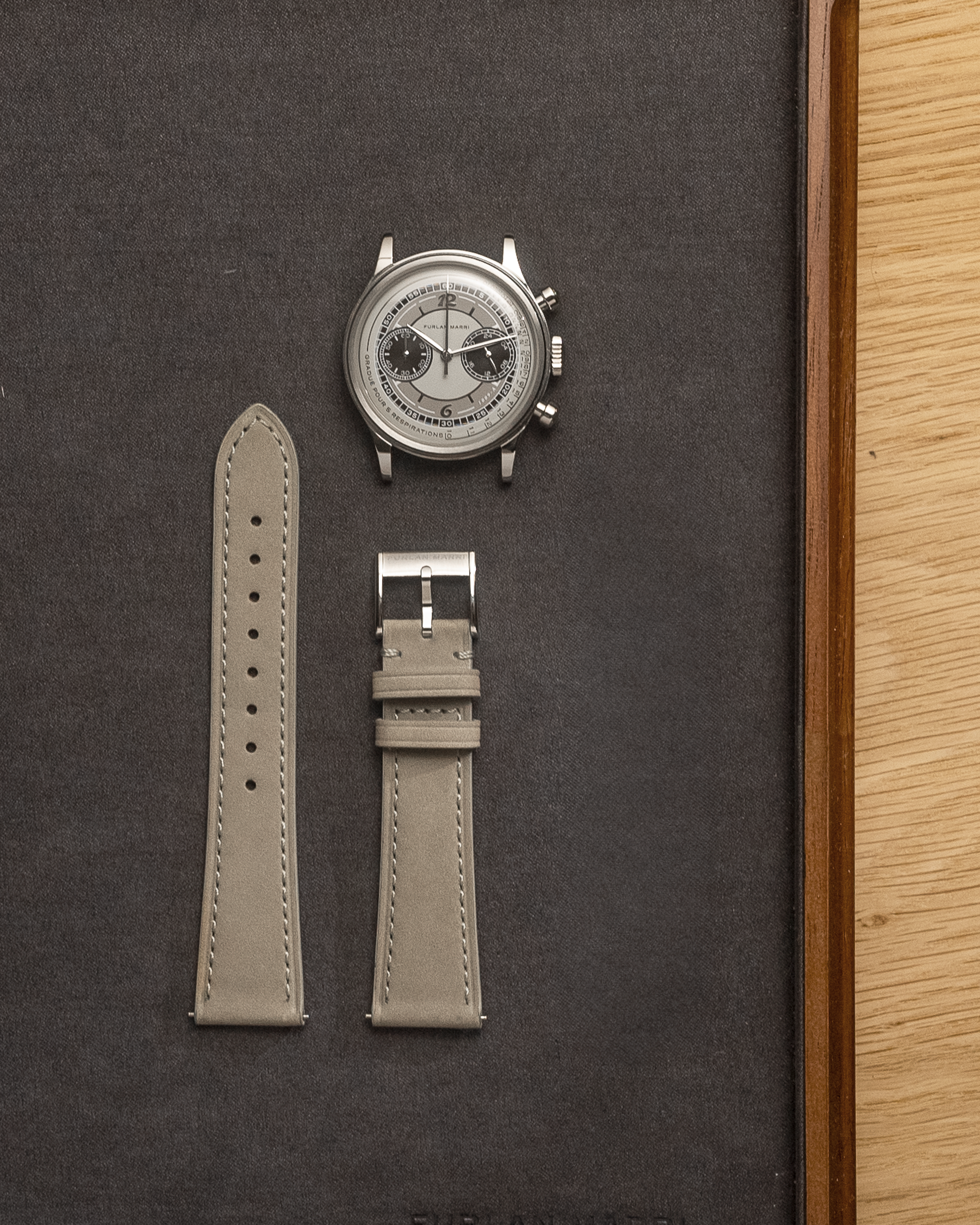 316L ステンレススティール製のピンバックルは、ブラッシュ仕上げが施され、ロゴ入り、リファレンス番号が刻印されています。