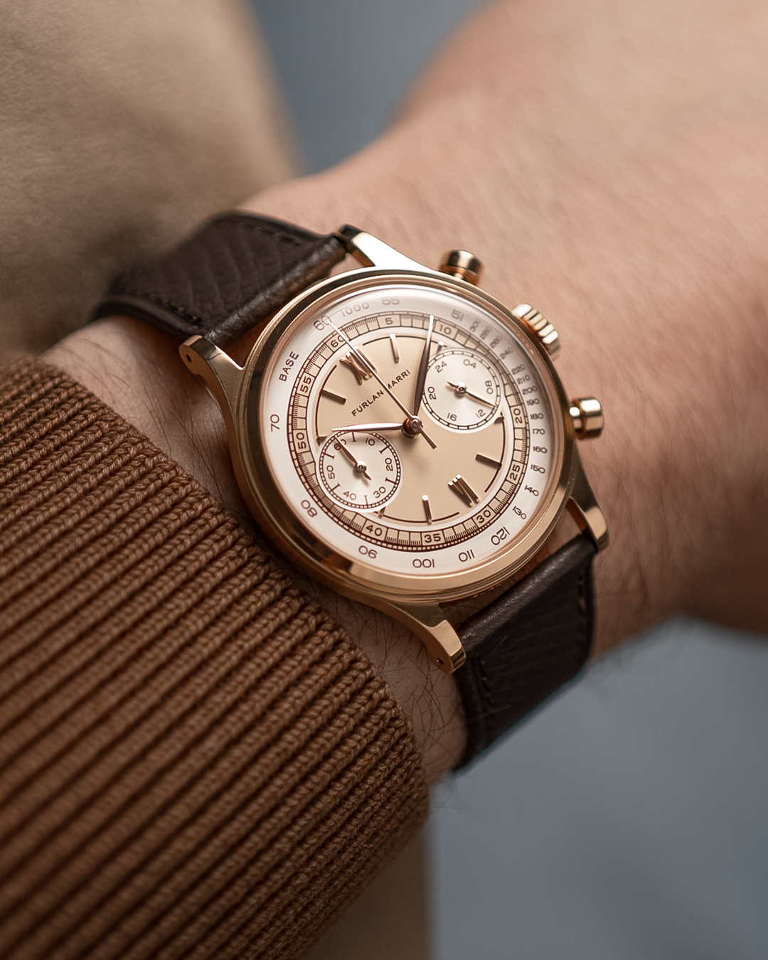 メカクォーツと呼ばれるハイブリッドムーブメントは、両者の魅力を兼ね備えています。日本製クオーツによる高精度と、スイープ運針や瞬時にリセットされるクロノグラフといった機械式モジュールの感覚を融合させたものです。1980年代後半、ピゲ社やルクルト社といったスイスのブランドと日本のメーカーが共同で開発し、クオーツショックの時代に失われかけた機械式クロノグラフの操作感を取り戻すために生まれました。ファーラン・マリは、この革新をスイスと日本の時計製造が共有する歴史の一章として讃えています。